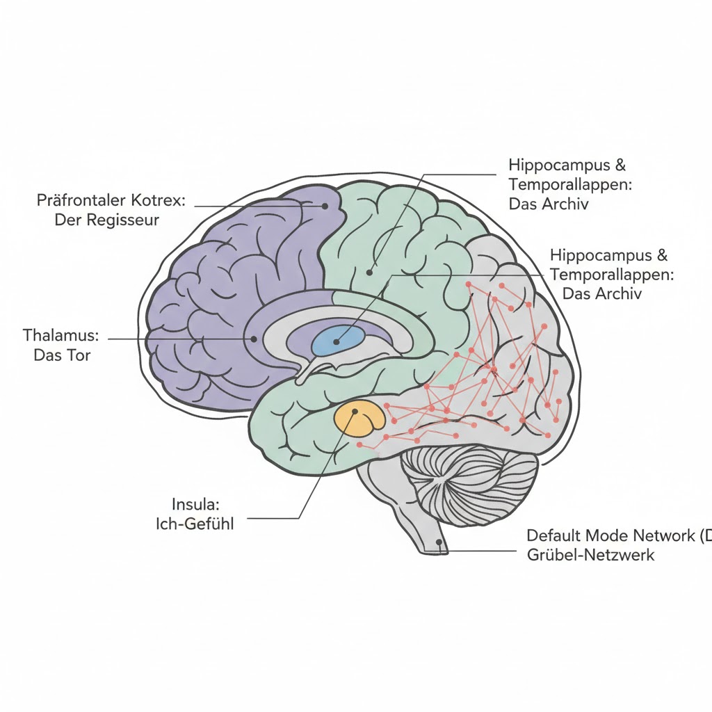 Die Konstruktion unserer Realität ist eine gewaltige Teamleistung verschiedener Gehirnareale: Der Thalamus fungiert als Pförtner, der Sinnesreize filtert, während der Präfrontale Kortex diese Daten logisch bewertet. Die Insula sorgt für das körperliche „Ich-Gefühl“ und der Hippocampus gleicht alles mit vertrauten Erinnerungen ab, um die natürliche Selbstverständlichkeit zu erzeugen.